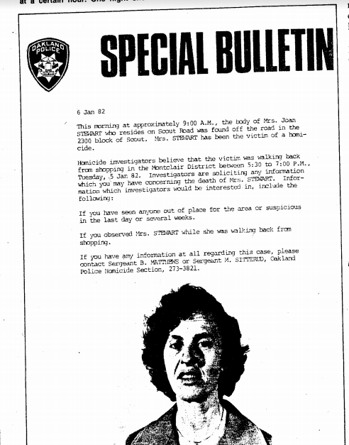 Bulletin Asking for Leads on Joan Stewart’s Case